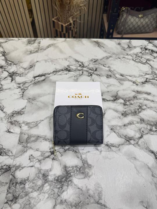Coac_h Noir Stripe Mini Zipper Wallet With Box (AAA60017) (Coffee)